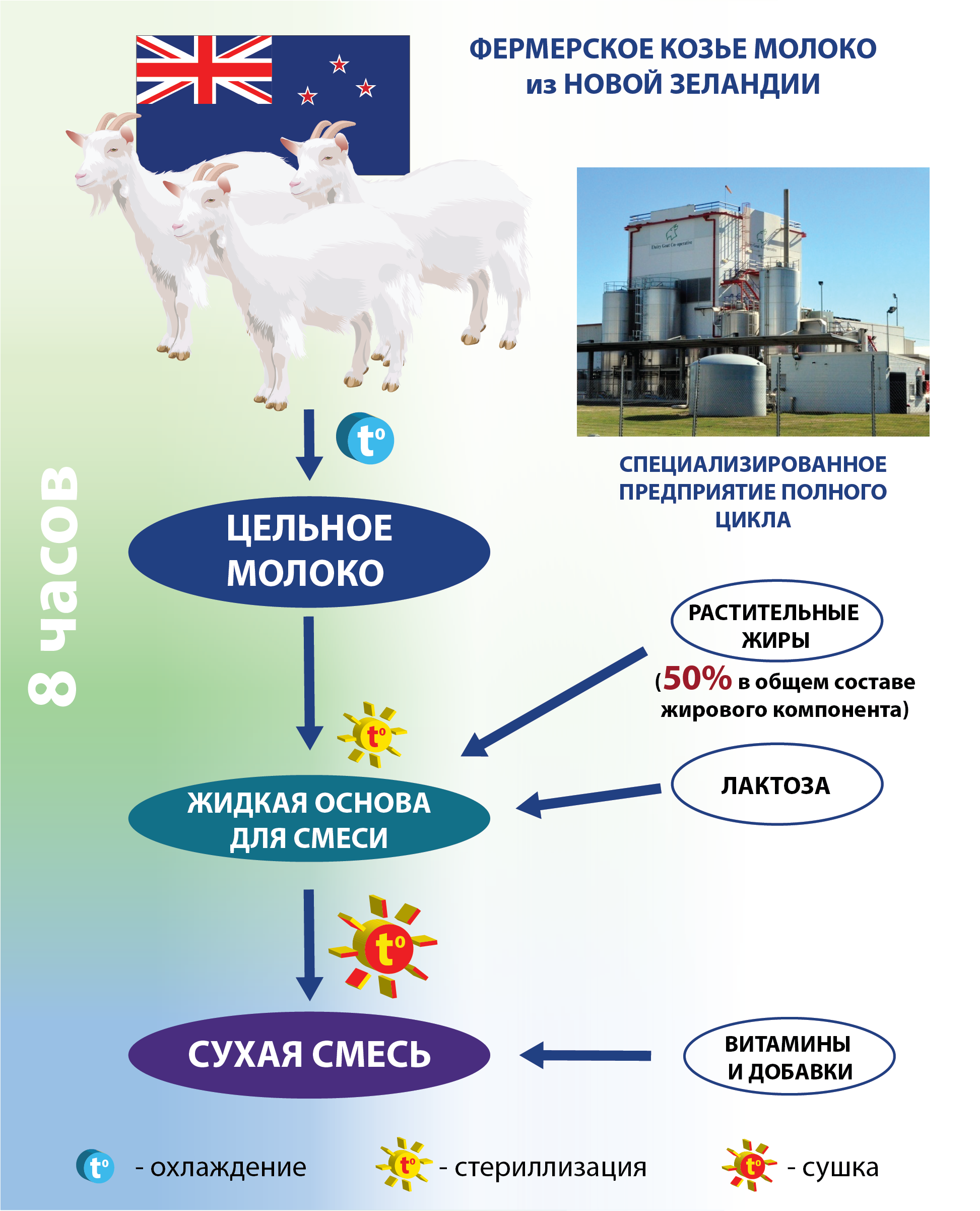 Козье молоко имеет намного большее сходство с женским молоком, поэтому и не требует такой кардинальной переделки, как коровье. Натуральное молоко – это живая ткань, и в ней очень много биологически активных веществ, важных для формирования здоровья малыша. Технология производства смесей НЭННИ позволяет сохранить все полезные «живые» свойства козьего молока, натуральный молочный белок и жир. При этом состав и количество всех пищевых компонентов, витаминов и минералов в смеси НЭННИ приводятся к стандартизированному составу детских смесей.